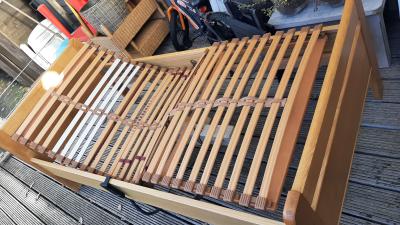 09-11-2025 12:15 |  | | Gratis af te halen: 1-persoonsbed. Fins ontwerp 1960. Teakhout. Uitstekende kwaliteit. 90x200. Buitenmaat max 93.5 x208. hoofdbord 67 (h), voetenbord 56 (h). 06-29432885 |