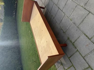 1 persoonsbed 90x200 Finse makelij. Buitenmaat max 93.5 x208. hoofdbord 67 (h), voetenbord 56 (h)