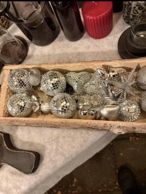 17-12-2025 12:07 |  | Zilveren kerstballen met houten bakje