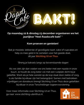 21-12-2025 11:33 |  | Aankomende maandag 22 en dinsdag 23 december organiseren we weer "Heel Raadscafé bakt!". Dit jaar Stichting Ut en Thus als goede doel. Doe mee of kom proeven!!