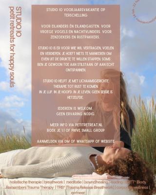 30-01-2026 15:37 |  | lichaamsgerichte sessies voor eilanders én eilandgasten. Studio IO is er voor wie wil vertragen, voelen en verdiepen. Soms ben je gewoon toe aan echt ontspannen aanmelden via DM of WhatsApp of website Meer info