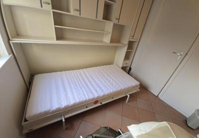 opklap bedkast met veel opbergruimte en een nieuw matras.