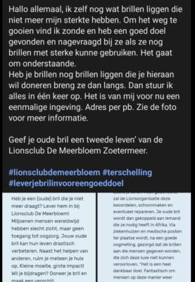 07-11-2025 14:07 |  | | Oude brillen op sterkte. Lever ze deze keer bij mij in en ik stuur naar het goede doel. Zie de foto |