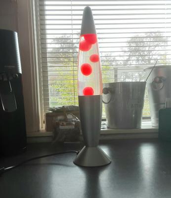 Lavalamp met rode lava.45cm hoog.€12,50 0622711358