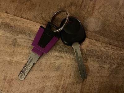 Heeft er iemand zaterdag avond een sleutelbos gevonden zoals op de foto de paarse sleutel is dan rosé en een auto sleutel