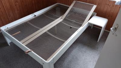 Tweepersoons ledikant zonder matras. Hoofd- en voeteneinde apart verstelbaar. Matrasmaat 140 x 200. |