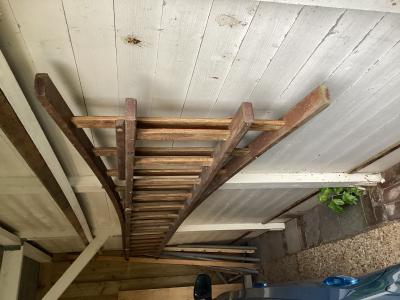 06-10-2025 15:32 |  | Houten ladder. Twee delen. Ieder deel 14 treden. Ladder is verder goed. Teab |